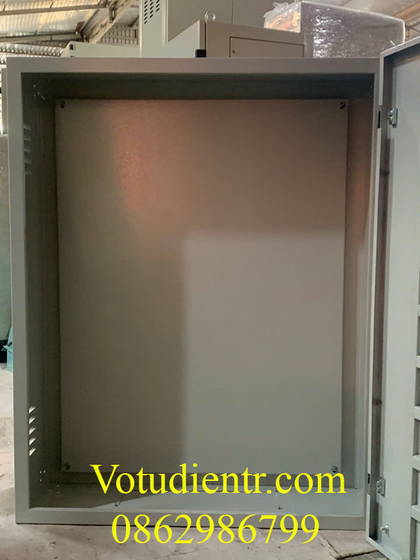 Vỏ tủ điện 1 lớp cánh trong nhà có hèm chống nước sơn tĩnh điện có tấm panel kích thước 900x600x250x1,2mm cánh ngoài khoét lỗ có thanh tăng cứng cánh giá tốt tại xưởng hà nội và TP HCM