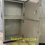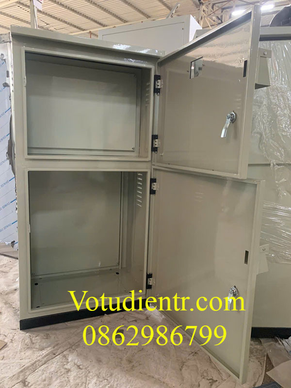 Vỏ tủ điện 2 lớp cánh ngoài trời chia 2 ngăn kích thước 1200x600x300x1,2mm sơn tĩnh điện có tấm panel giá tốt tại xưởng hà nội và TP HCM