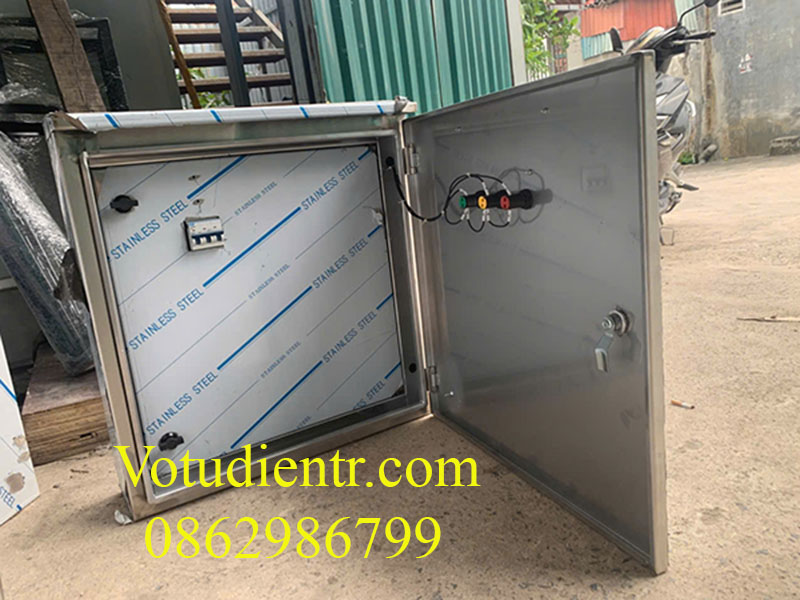 Vỏ tủ điện inox 304 ngoài trời sơn tĩnh điện kích thước 800x600x250x1mm 2 lớp cánh có tấm panel có hèm bẫy nước có hèm chống nước giá tốt tại xưởng hà nội và TP HCM