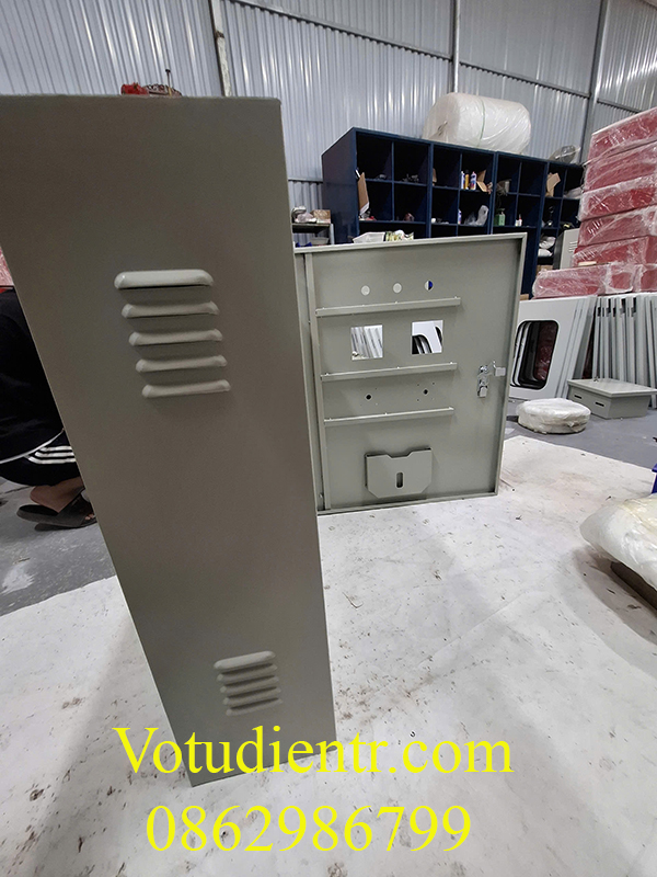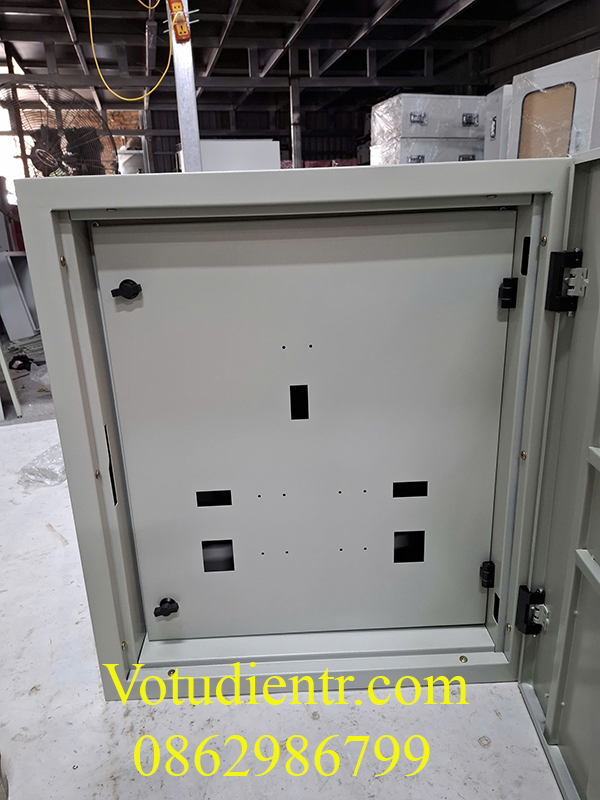 Vỏ tủ điện trong nhà 2 lớp cánh 600x400x200x1mm sơn tĩnh điện màu ghi sần sáng giá tốt tại xưởng Hà Nội